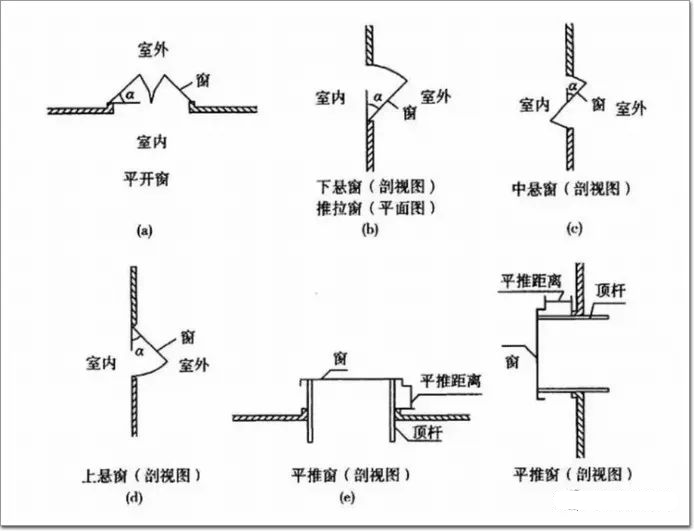 通风专业采用自然排烟的场所,储烟仓高度范围内排烟窗的有效开启面积应满足通风专业的要求,有效排烟面积应根据《建筑防烟排烟系统技术标准》GB51251-2017第4.3.5条进行计算,开启形式详(详图一)。注意外窗采用悬窗时,应在立面图注明悬窗的开启角度。